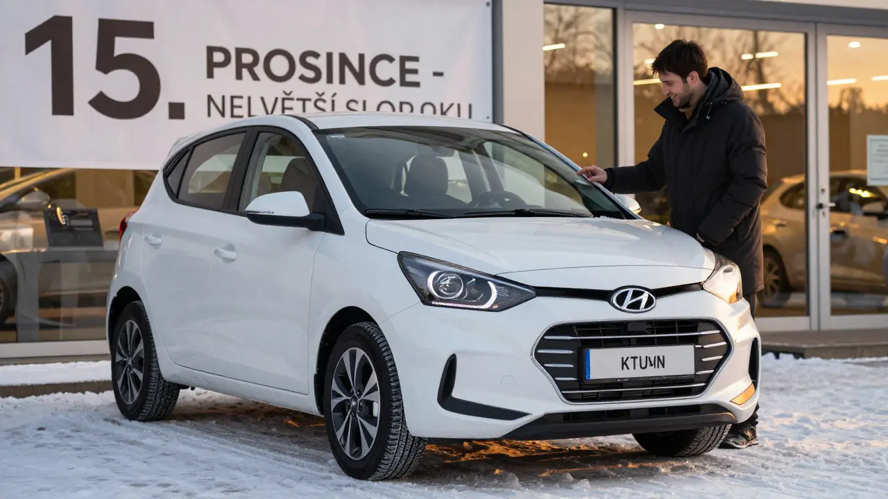 Největší slevy na nová auta přicházejí vždy na konci roku - konkrétně v listopadu a prosinci. Prodejci mají kvůli ročním kvótám a zásobám velký tlak na prodej. Pokud nechceš být posledním, kdo si vezme auto z prodejny, můžeš si vyjednat slevu až 25 % od doporučené ceny. V prosinci 2024 se Hyundai i10 prodával s slevou 22 %, což znamenalo ušetření přes 100 000 Kč. V roce 2025 to bude stejné - nebo dokonce lepší.